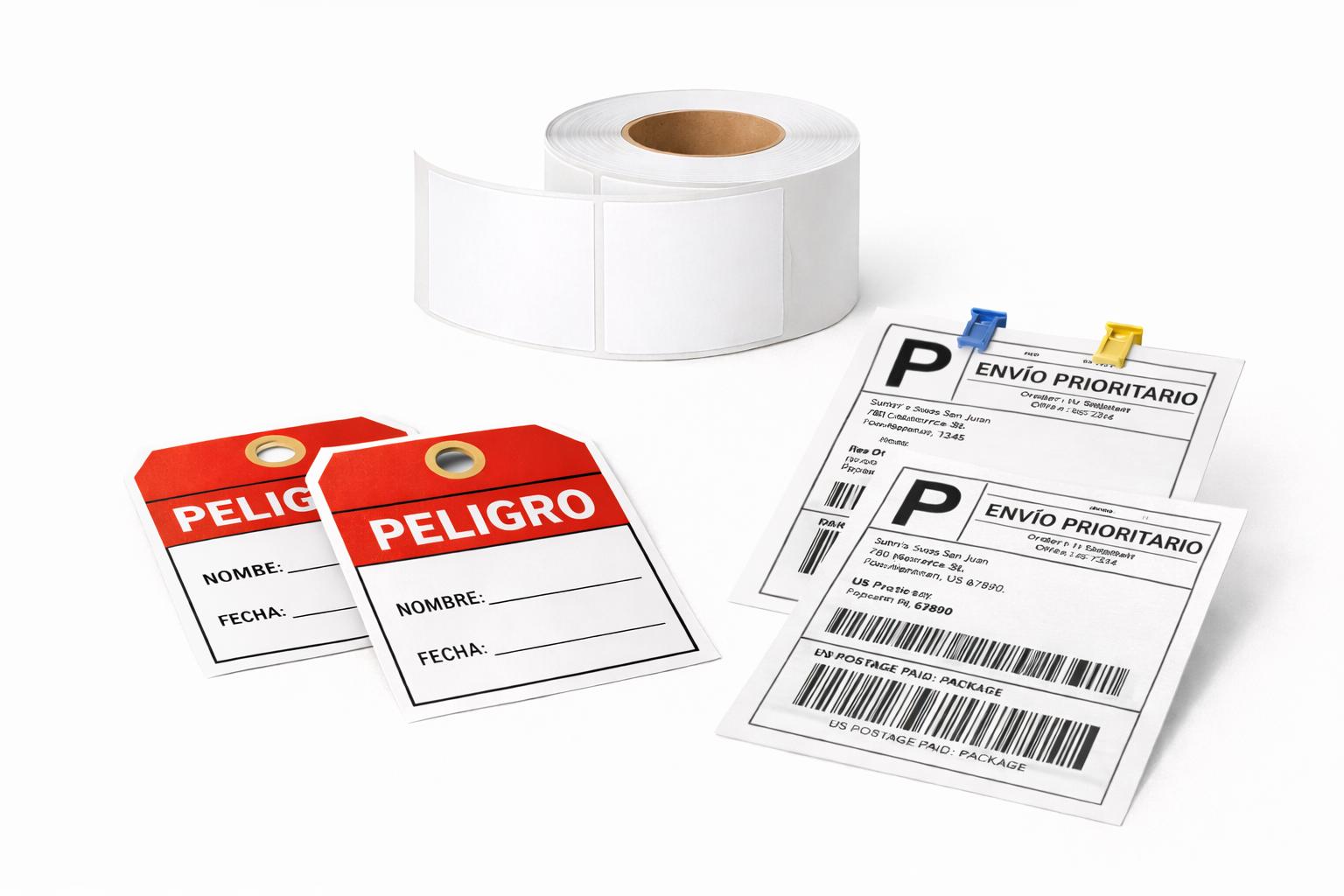 Tipos: etiquetas adhesivas, señalización.